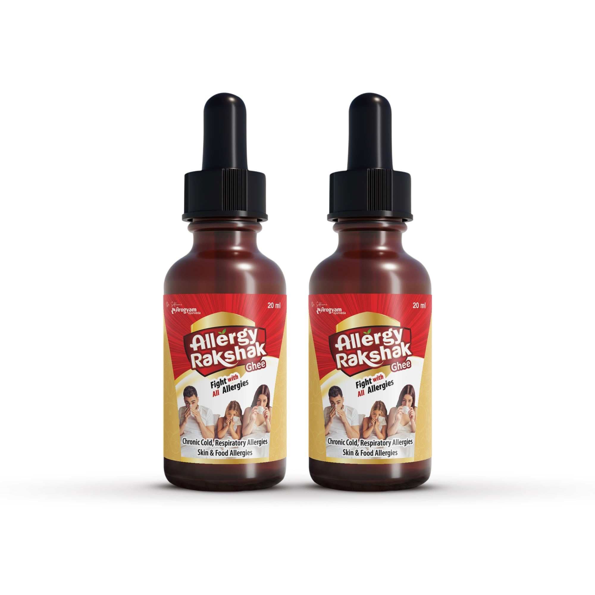 Arogyam Allergy Rakshak Ghee is made of pure cow ghee and Anu oil under careful consideration of Ayurved Sar Sangrah. This excellent combination allows clear nasal passage of allergens, phlegm, and congestion in the airways. A simple and effective formulation to use that enhances the sensory organs and balances the Tridosha (Vata, Pitta, Kapha).