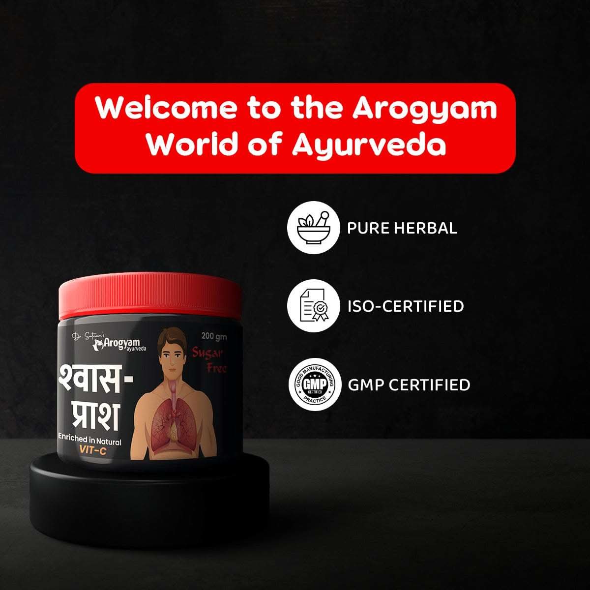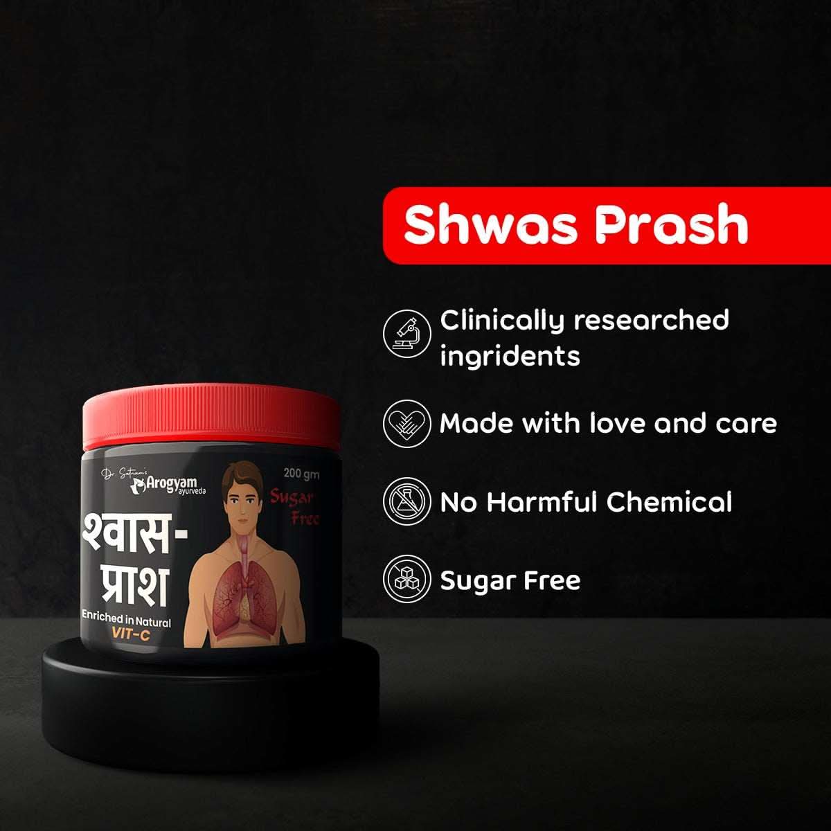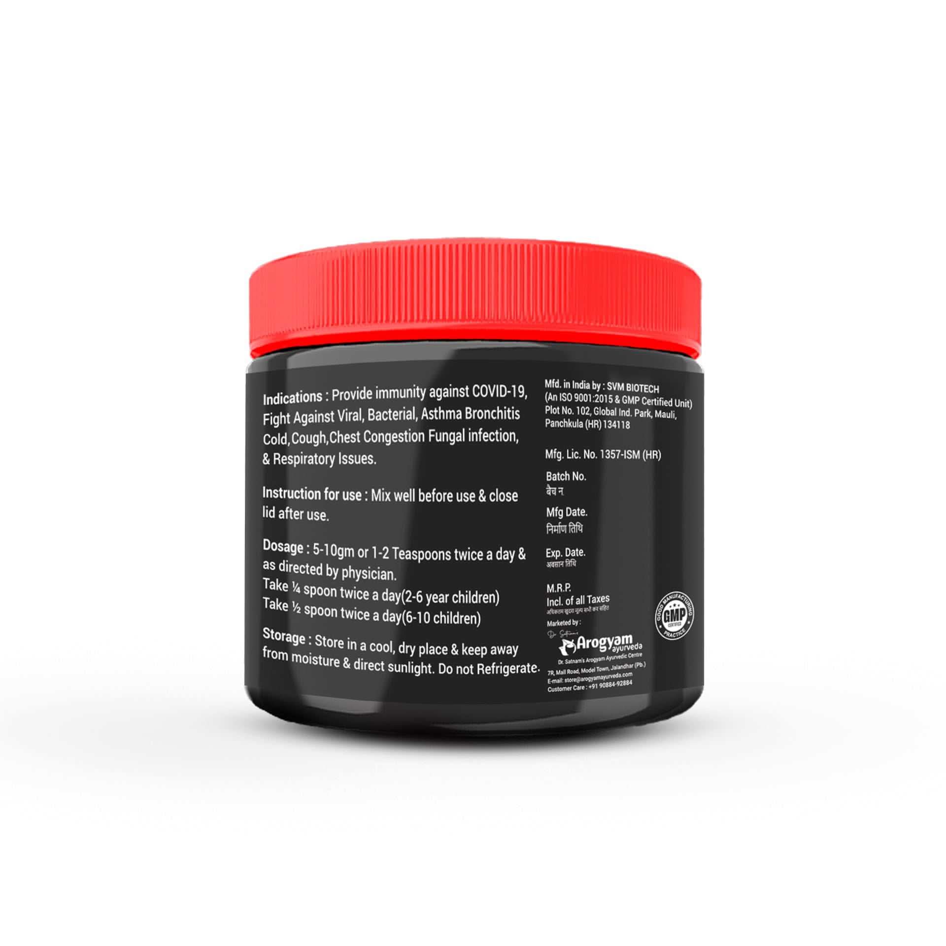 cShwas Prash by Arogyam Ayurveda is formulated traditionally by expert M.D. ayurvedic doctors with ancient medicinal and immunity-enhancing plants and herbs. It is a 100% natural and safe herbal product to be used every day for all seasons. It is highly rich in Kantakari Avaleha for cold, cough, and infection. It has the goodness of Amla, Giloy, and Ashwagandha that enhances immunity and supports overall energy and digestive metabolism. A spoonful of Arogyam Immune Prash supports optimal functioning of immunity and vitality of the body.