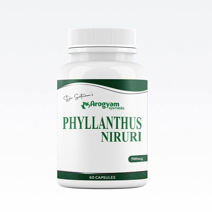 Phyllanthus Niruri Capsules by Arogyam is a standard medication for gastrointestinal disorders and urinary tract infections. It is also a hepatoprotective agent to protect against liver damage. It also corrects the condition of dysuria due to its diuretic property. Beneficial in treating cough, malaria, and asthma. It protects the body against damage caused by viral and bacterial fevers. This capsule is efficient to treat various infections and disorders related to the liver, stomach, and urinary tract.
